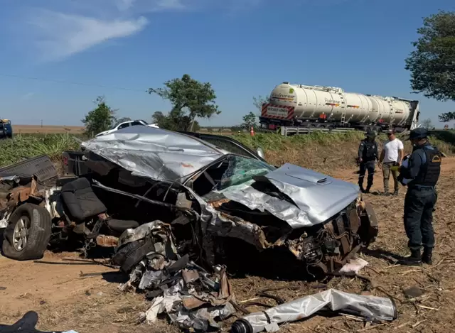 O motorista do caminhão ainda tentou desviar, porém, não conseguiu impedir a colisão. Devido à força do impacto, a caminhonete capotou várias vezes na pista, ficando completamente destruída.